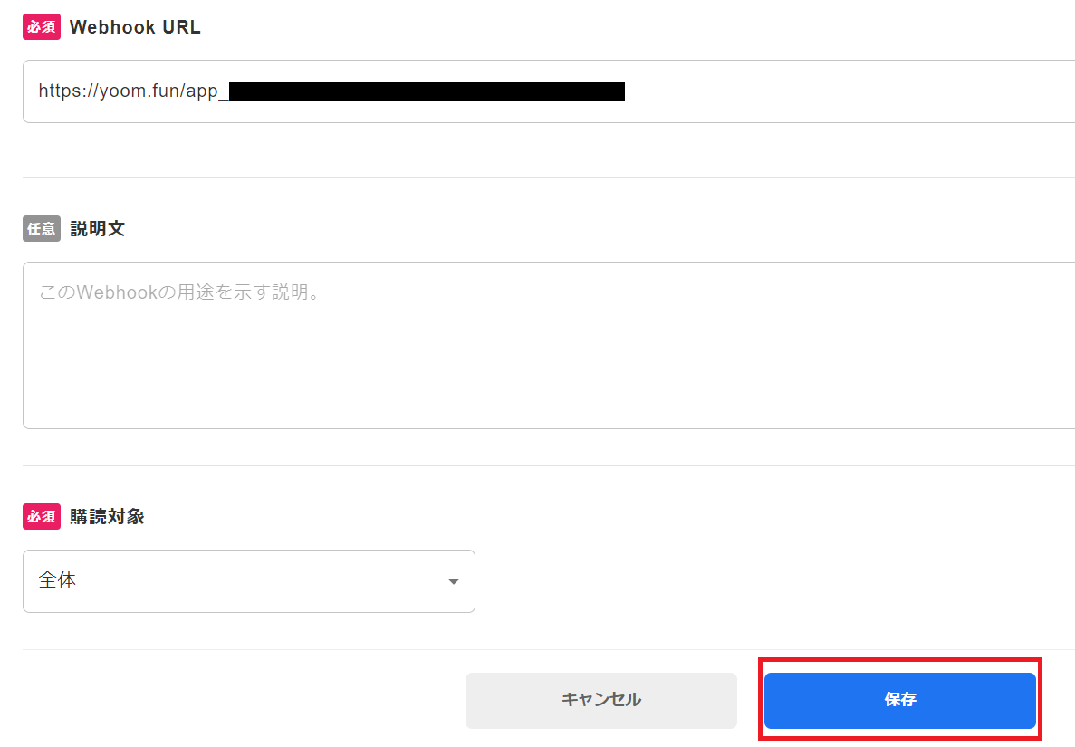 Yoomからコピーしたアドレスを貼り付けたら右下の保存を押せばOKです!