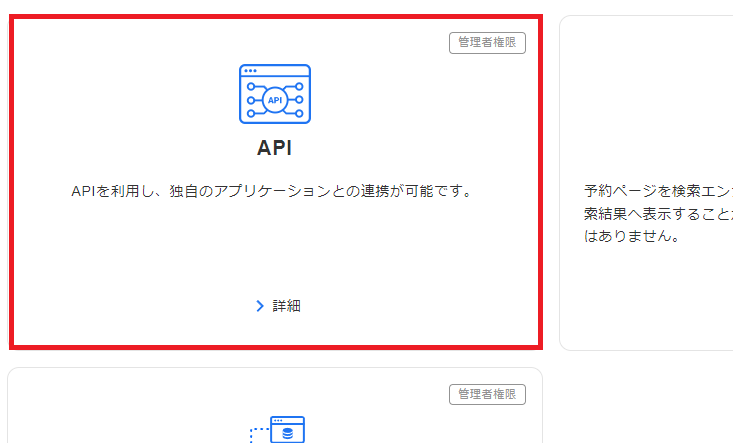 画面を1番下の方にスクロールしていくとAPIという項目があるので押しましょう。