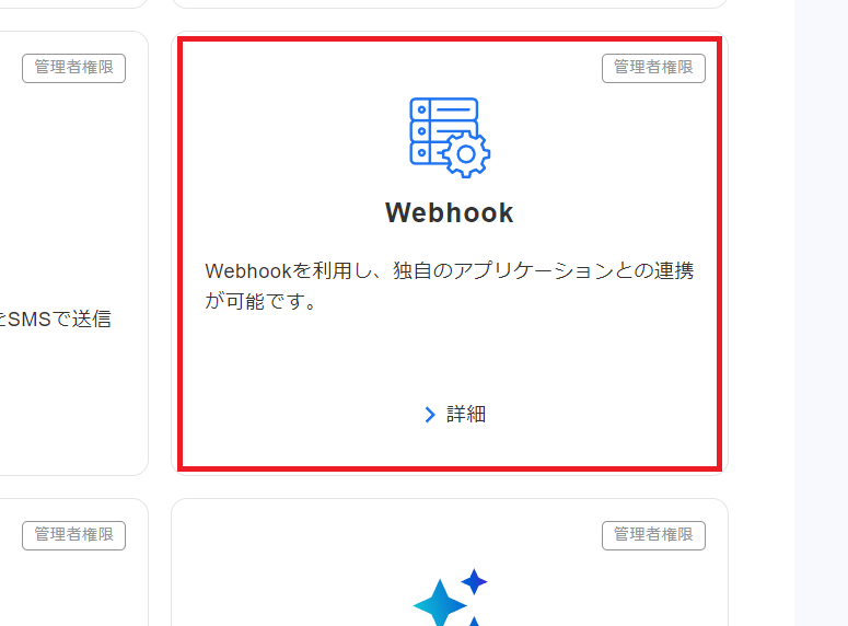 今回は画面の下の方にあるWebhookというリンクをクリックします。