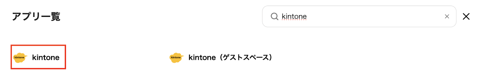 検索窓にkintoneと入力し、表示された候補から選択します。