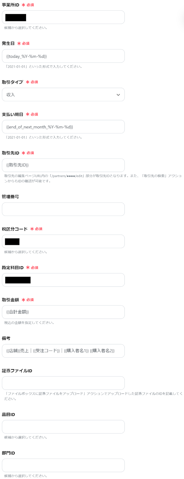 - 「支払い期日」→{{end_of_next_month_%Y-%m-%d}}