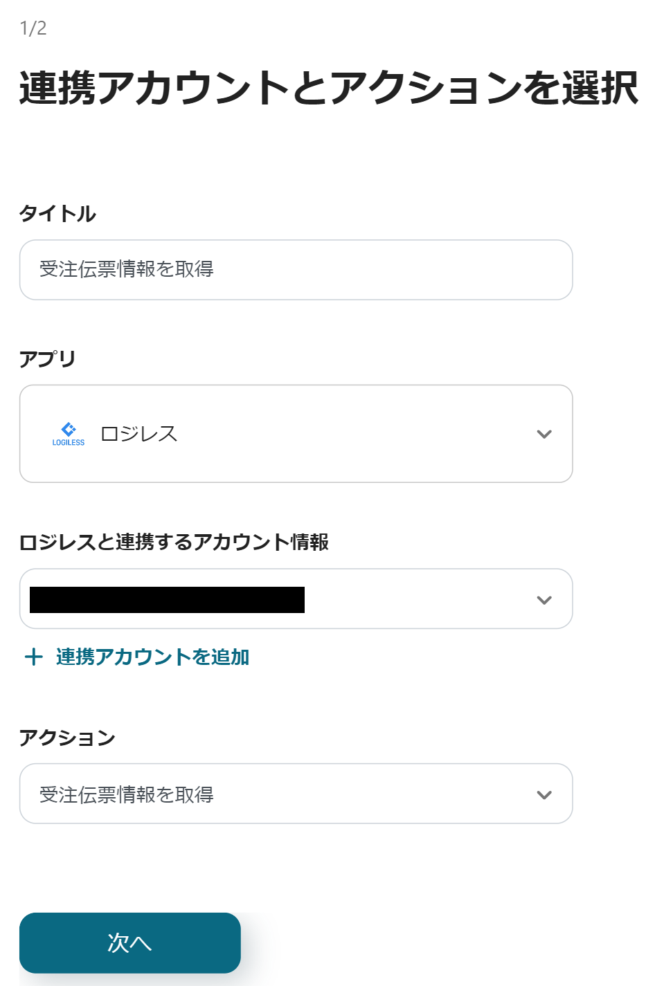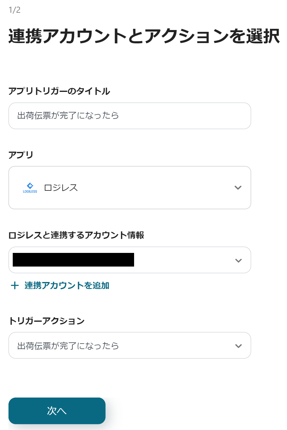 - 「ロジレスと連携するアカウント情報」→使用するアカウントか確認