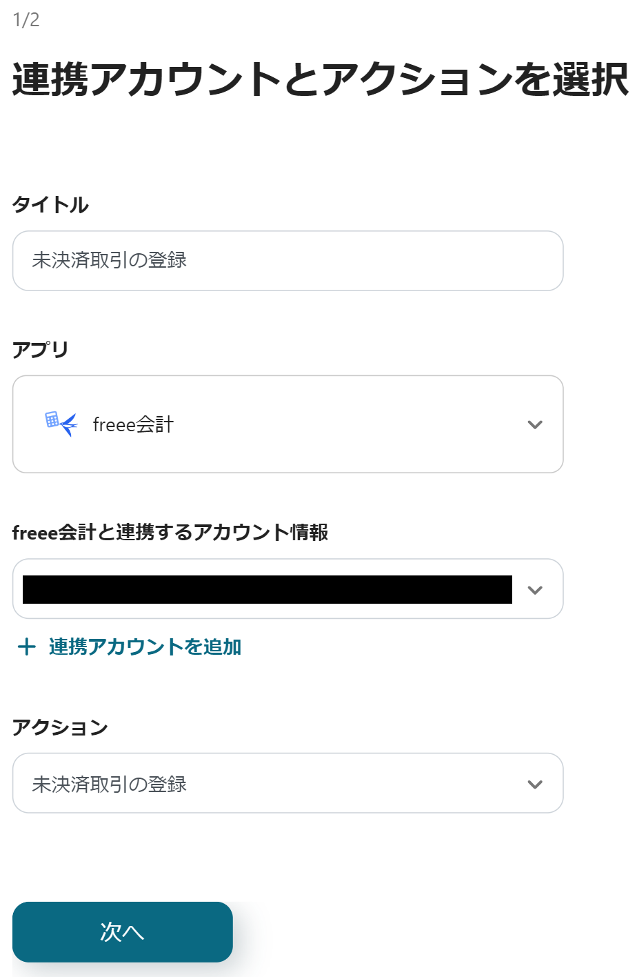 - 「freee会計と連携するアカウント情報」→使用するアカウントか確認
