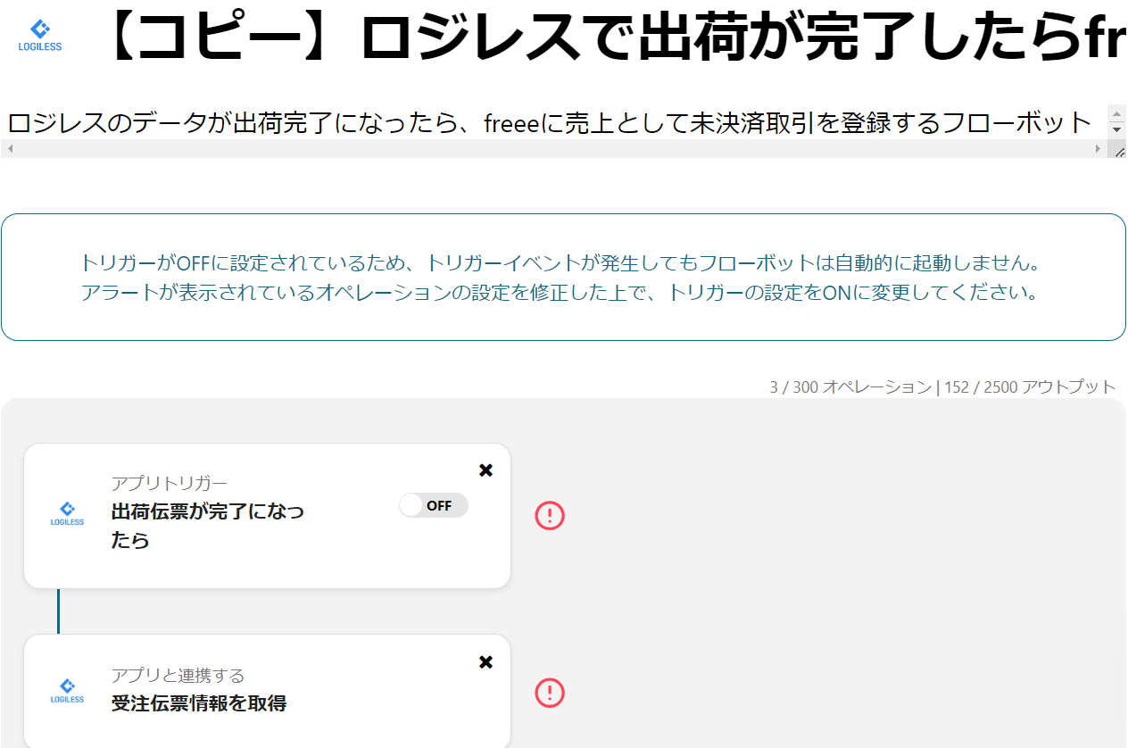 ロジレスのデータが出荷完了になったら、freeeに売上として未決済取引を登録するフローボットです。
