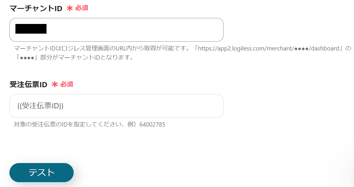 ※マーチャントIDはロジレス管理画面のURL内から取得が可能です。