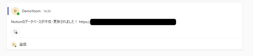 これでNotionのデータソースの作成・更新がMicrosoft Teamに通知されるようになりました。