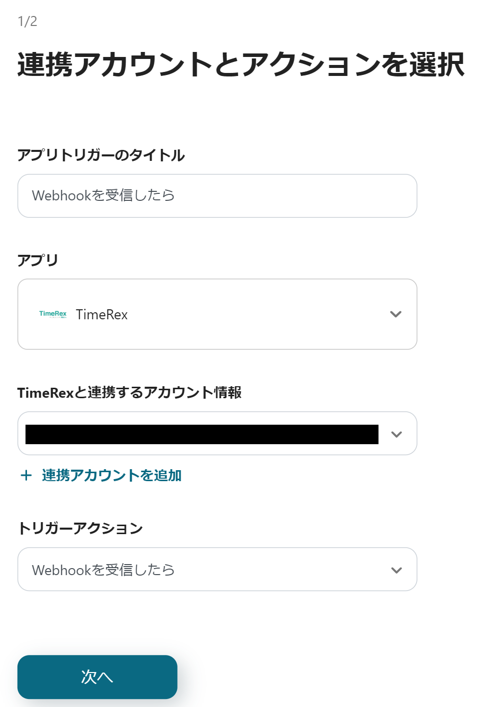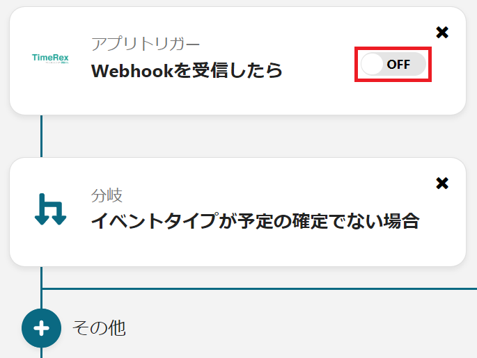 初めにTimeRexの設定から行うので、「Webhookを受信したら」をクリックしましょう。