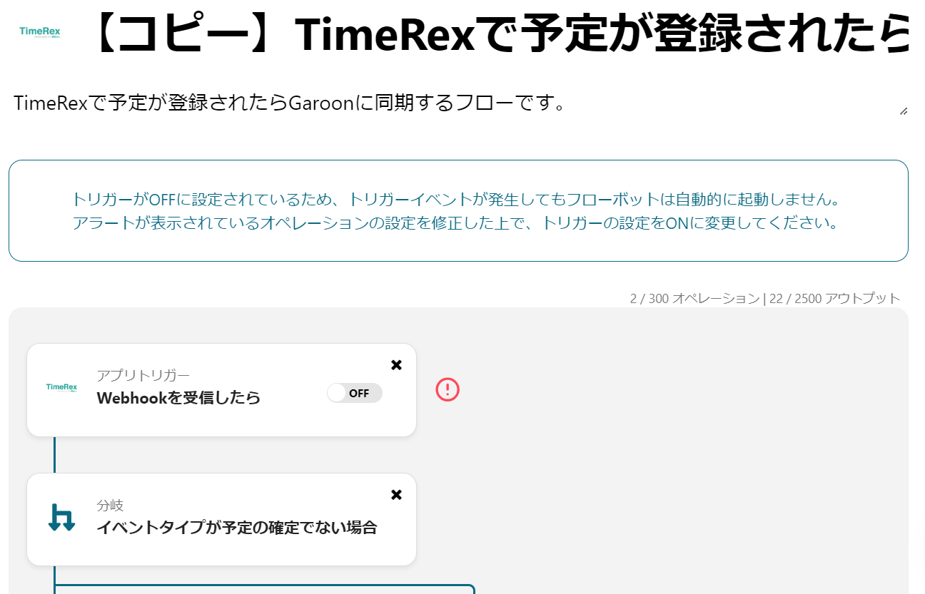 本記事では「TimeRexで予定が登録されたらGaroonに同期する」フローの作成方法をご紹介します。