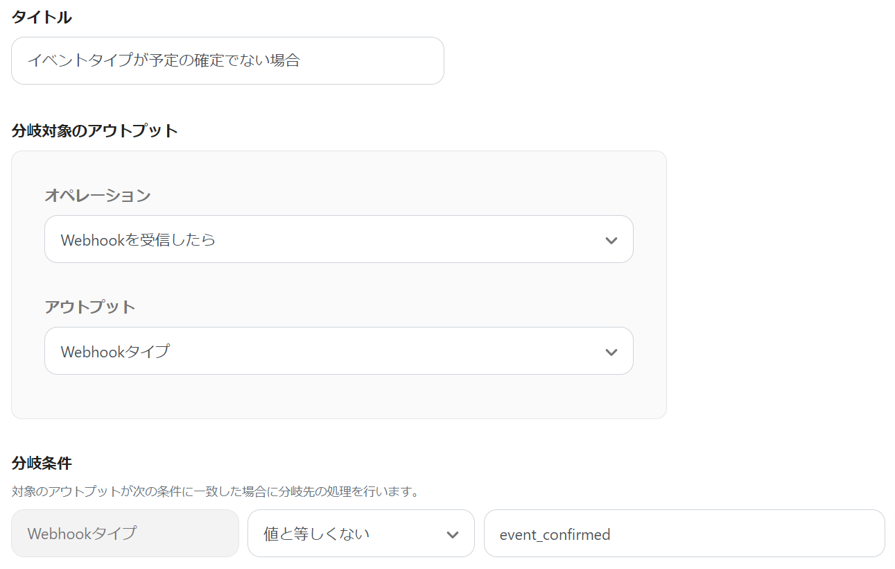 続いて、予定の登録が確定している場合としていない場合に分ける設定を行うので、「イベントタイプが予定の確定でない場合」をクリックしてください。