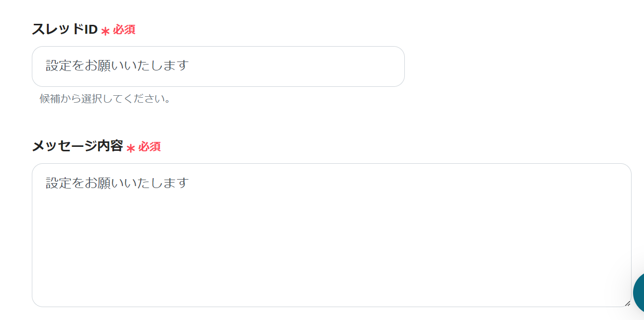 7)アクションは「スレッドにメッセージを投稿」を選択し、「次へ」をクリックします。