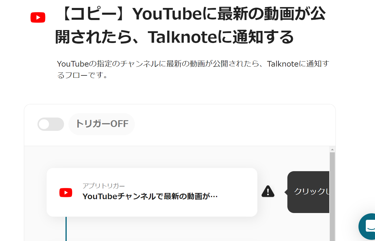 今回は、【YouTubeに最新の動画が公開されたら、Talknoteに通知する】というフローを作成します。