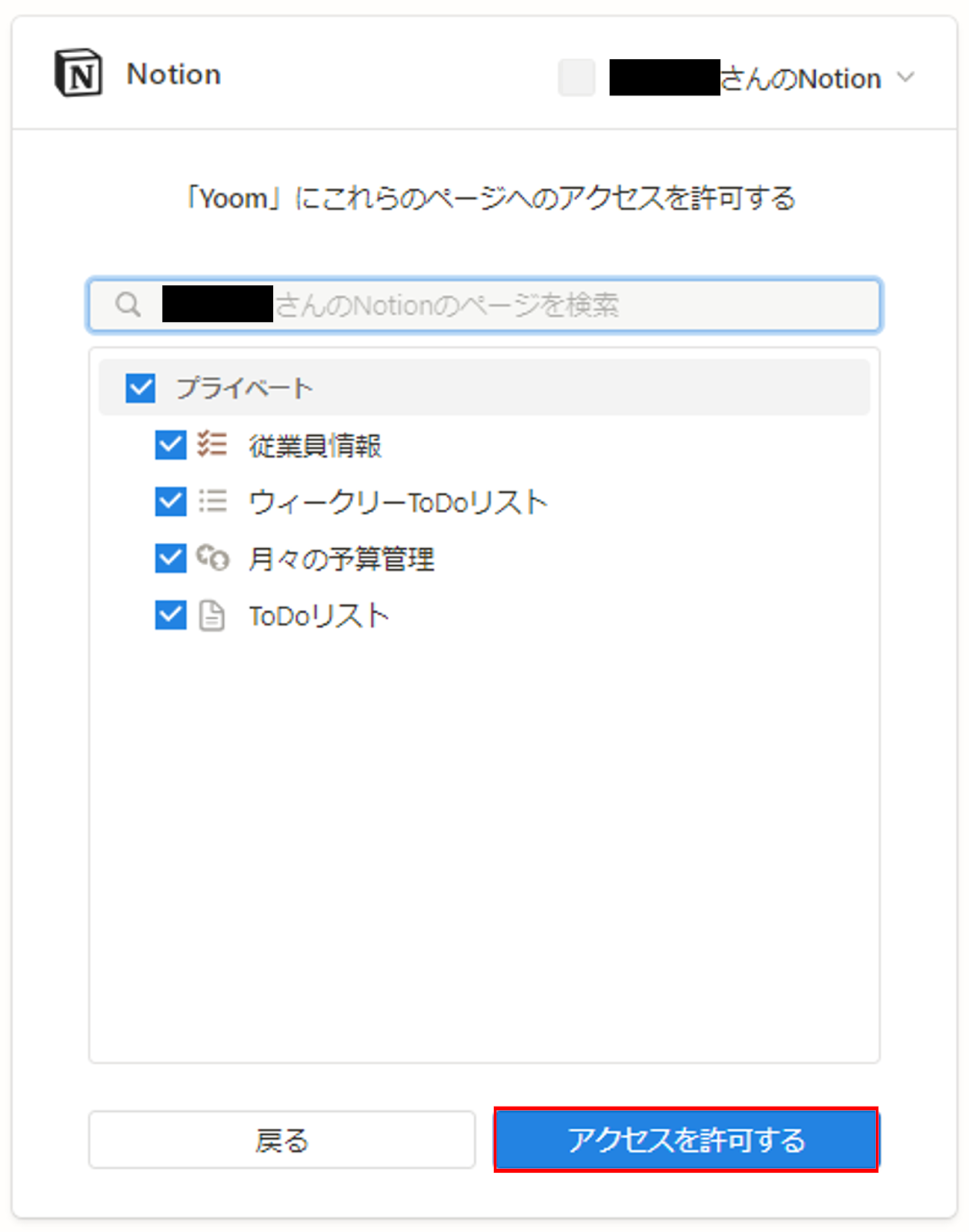 次はNotionの設定です。これも「マイアプリ」に登録してください。