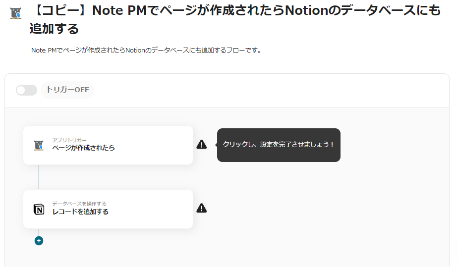 ここからは、「Note PMでページが作成されたらNotionのデータベースにも追加する」フローの設定についてご紹介します。