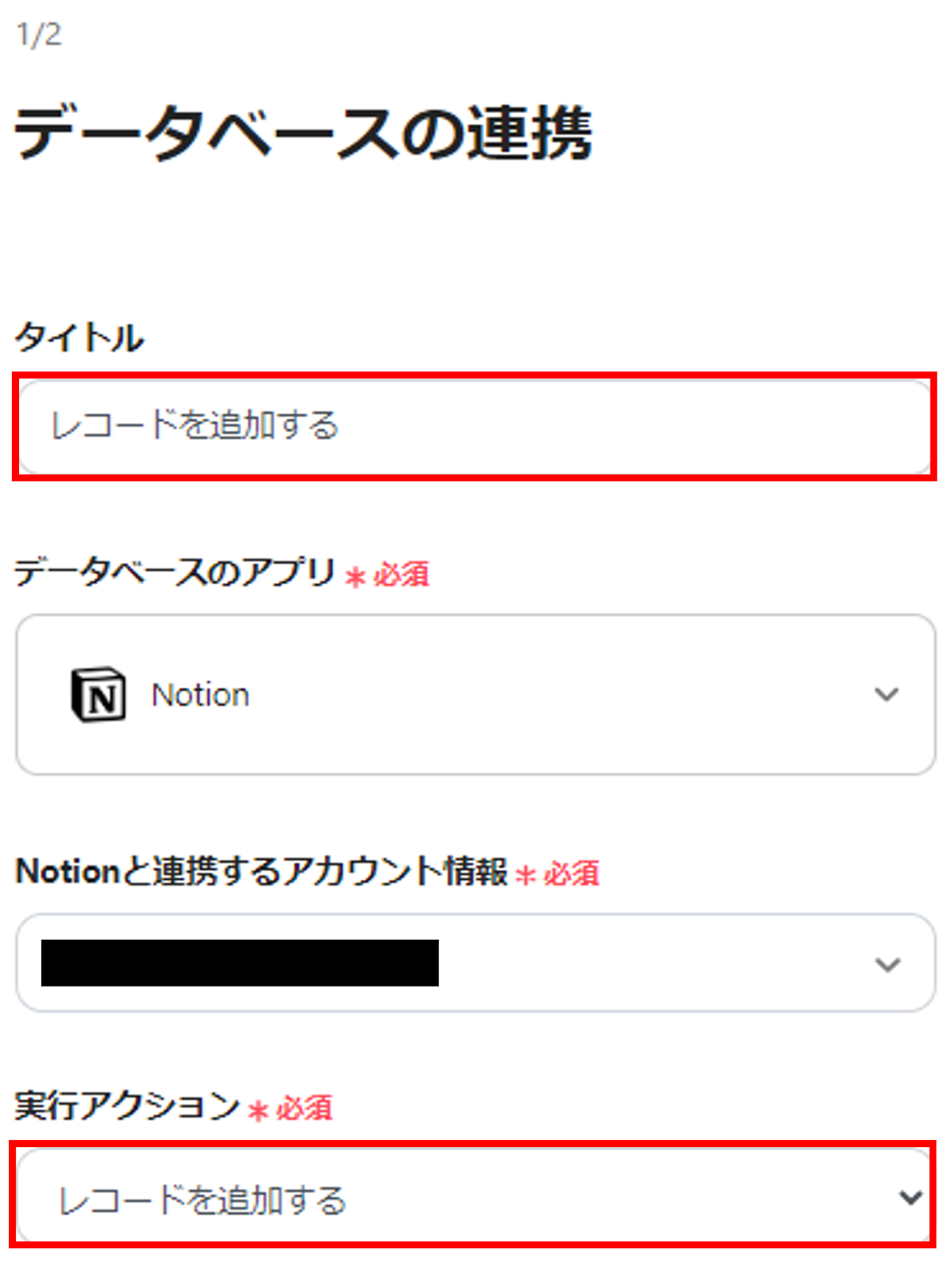 (8)タイトルを設定し、実行アクションは「レコードを追加する」が選択されていることを確認