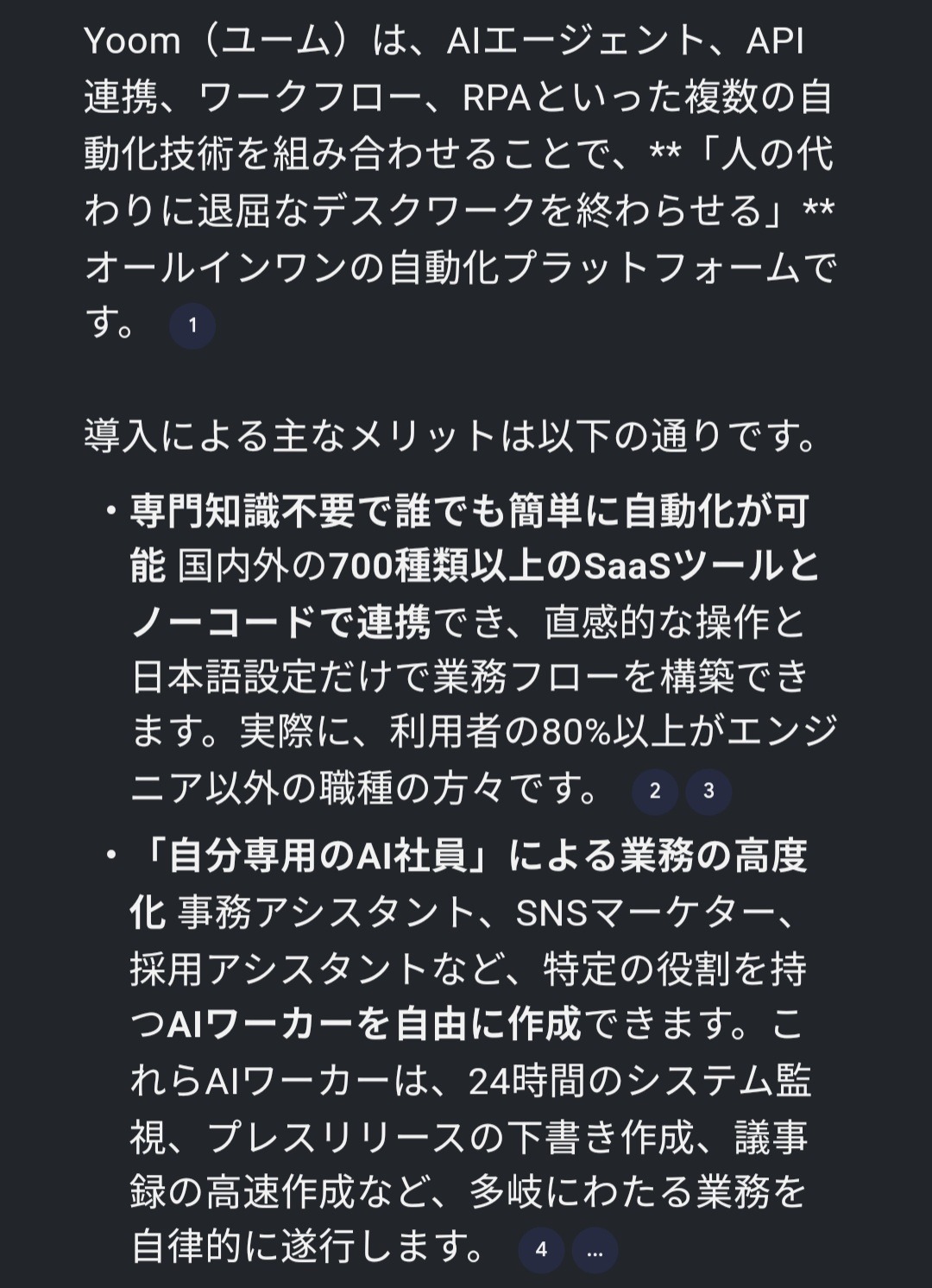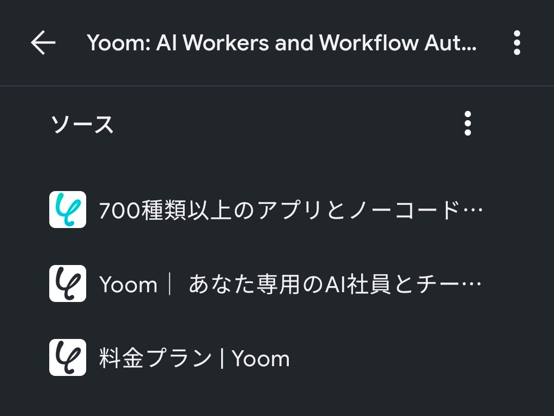 【検証1】Yoom公式サイトの記事から「スライド資料」の骨子を自動生成 最初の検証として、「Yoom」の公式サイト内にある、業務自動化の活用事例を解説したWeb記事をNotebookLMアプリに読み込ませました。