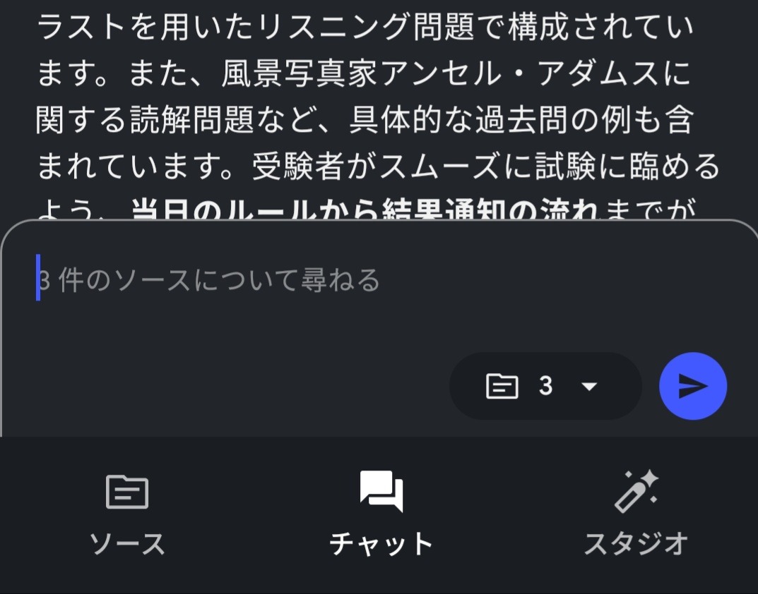 解析が終わると、画面下にテキストボックスが表示されるので、それをタップしてAIとの対話を始めましょう。