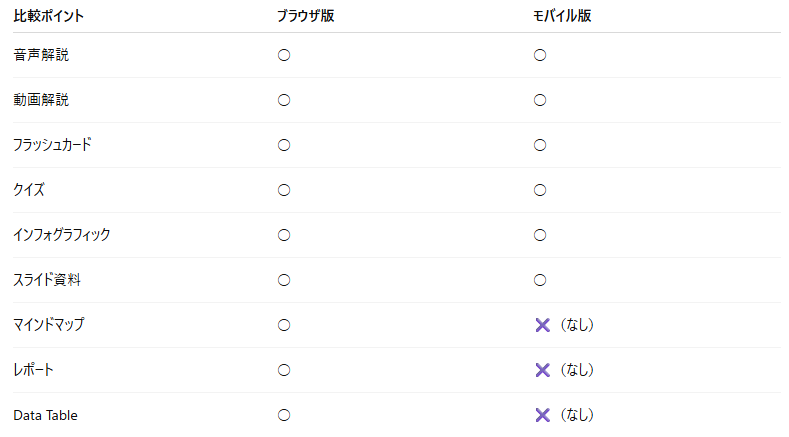 それでは次にブラウザ版とモバイルアプリ版の機能の違いや、どういった使い分けが想定できるかなどを記載していきます。