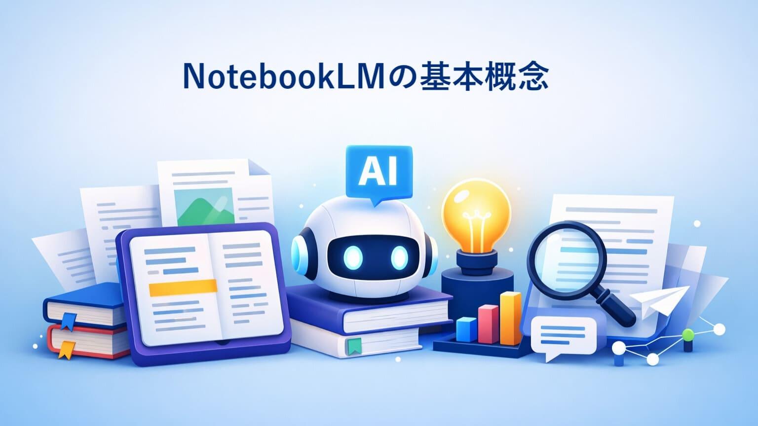 NotebookLMを使いこなすには、まず「ノートブック」と「ソース」という2つの考え方を押さえておきましょう。