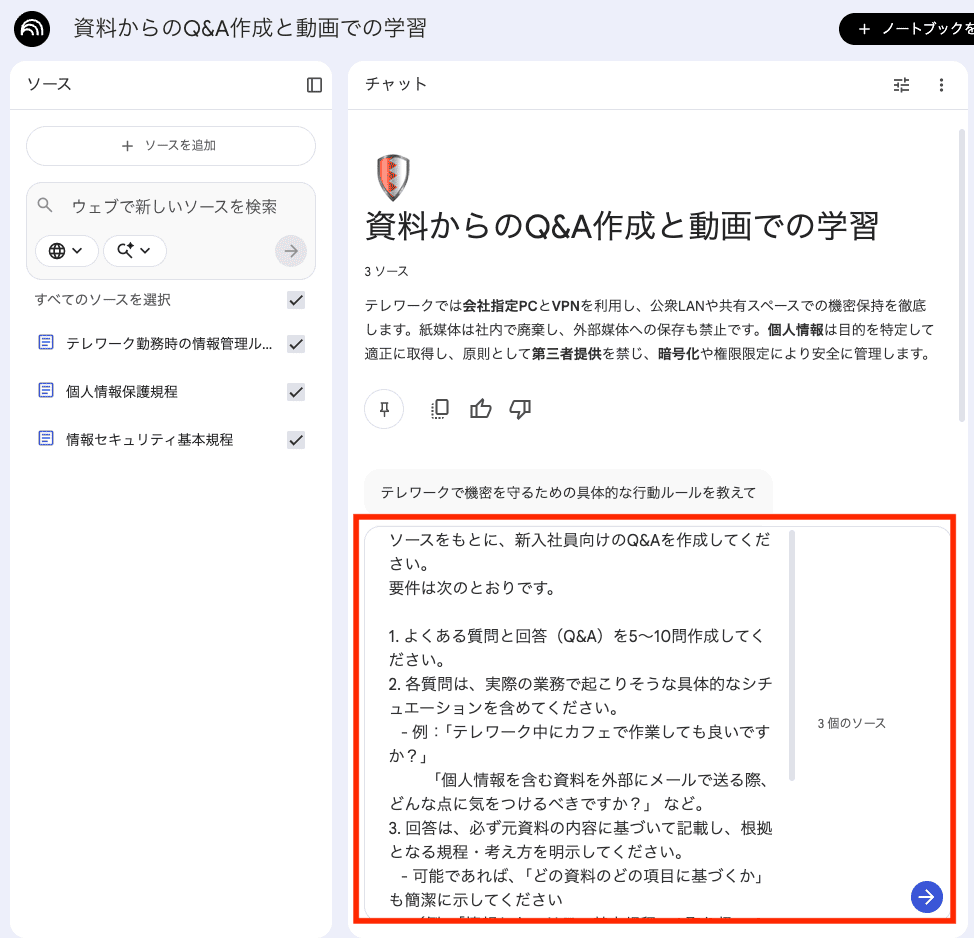 実際にNotebookLMを使って、2つのシナリオで実用性を検証してみました。