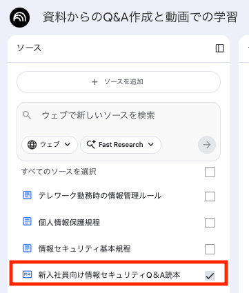 すると画面左側のソースに、作成したQ&Aが登録されました。