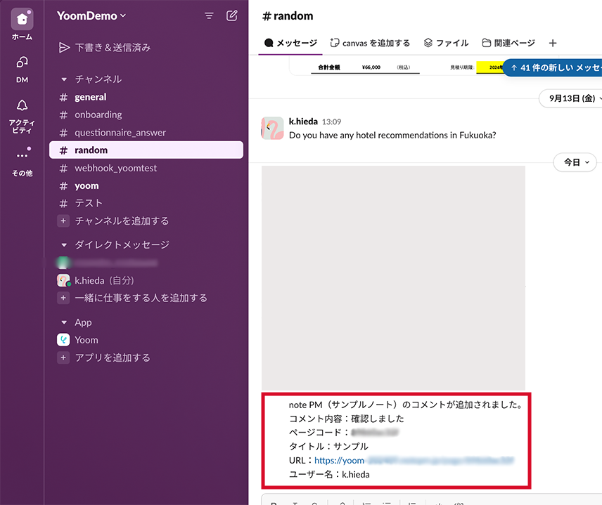 こちらで連携作業は完了です!Slackでは通知が確認できました。