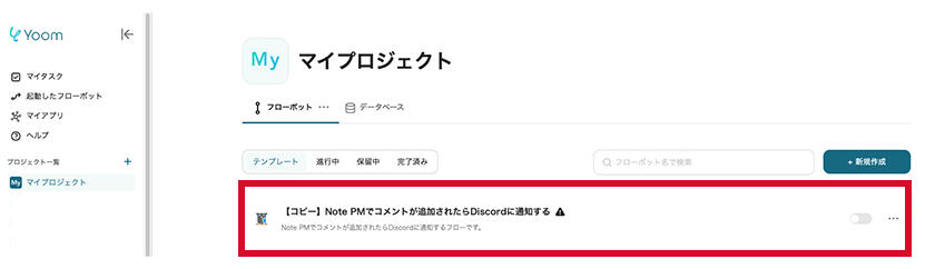 ここから「NotePMでコメントが追加されたらDiscordに通知する」フローボットの作り方をYoomのテンプレートを用いてご紹介します。