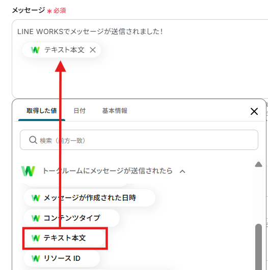 LINE WORKSのトークルームにメッセージが送信されたら、Microsoft Teamsに通知する