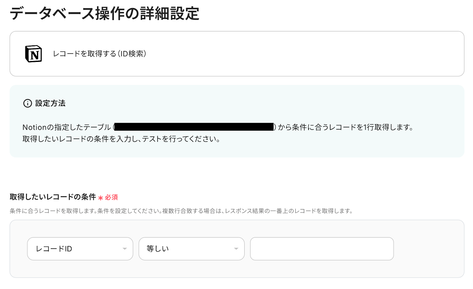この項目では、「取得したいレコードの条件」を設定します。