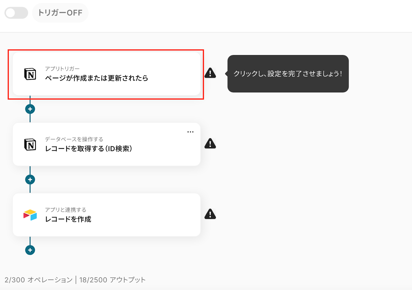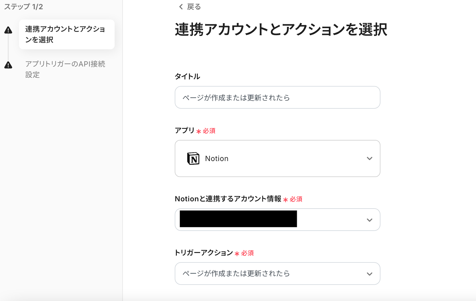 ステップ3:Notionのトリガー設定