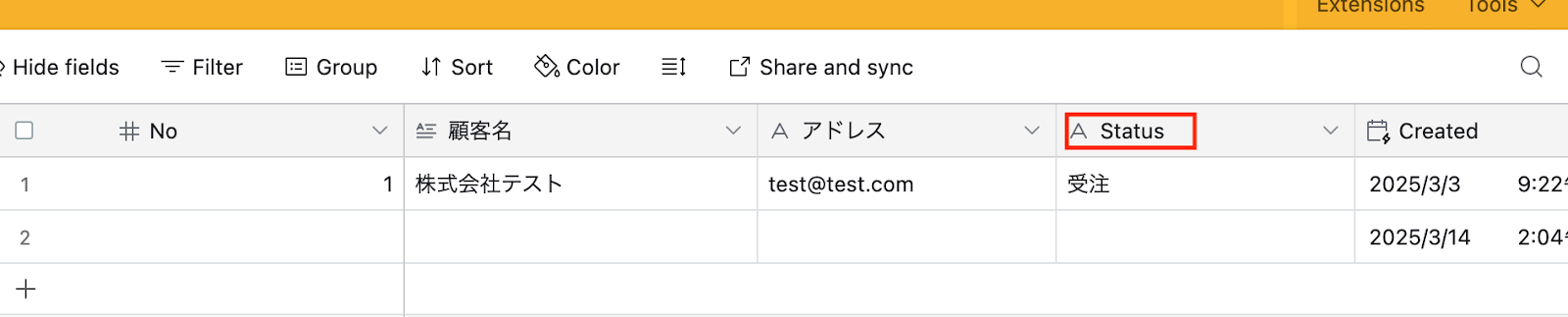 ※フィールド名を入力する際に、Airtableのヘッダと同様の表示になるように入力してください。