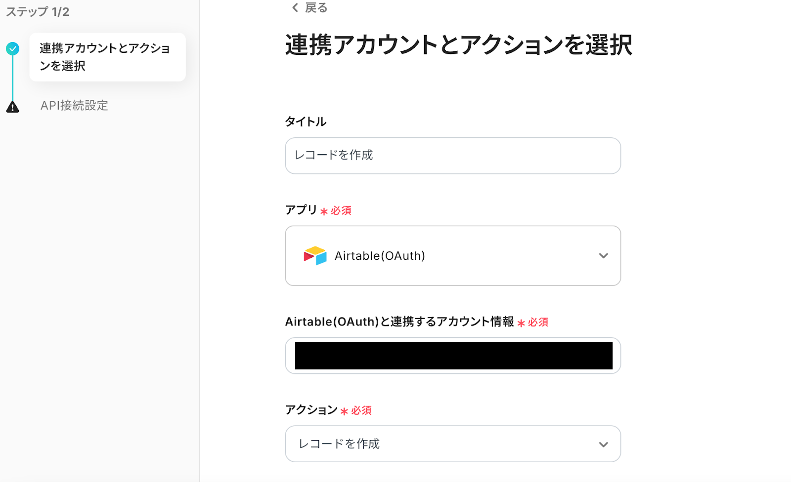 ステップ5:Airtableのアクション設定