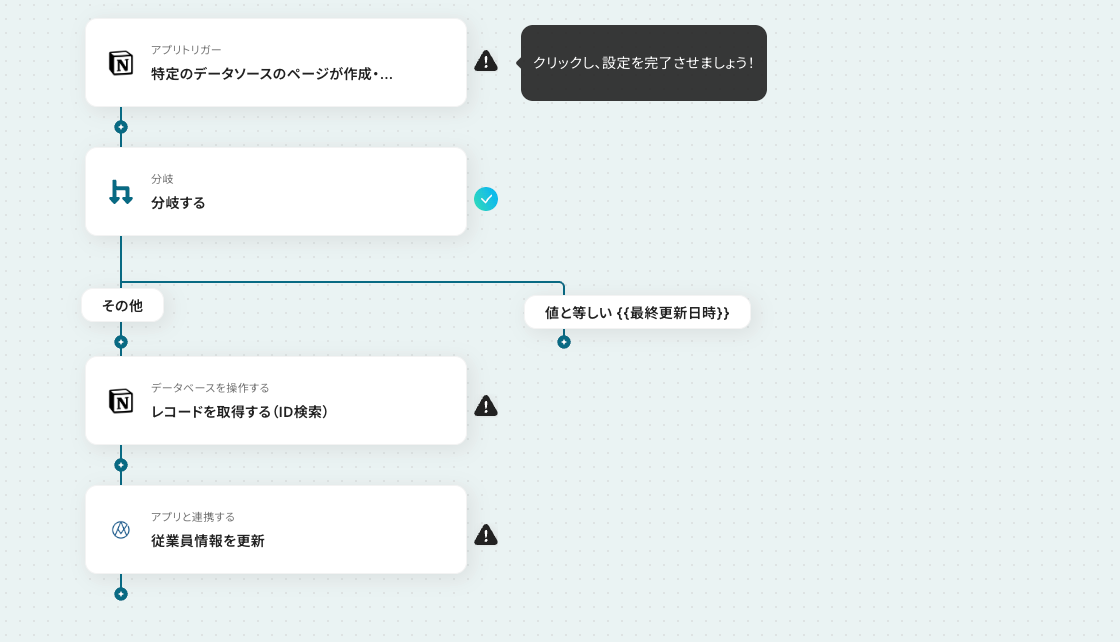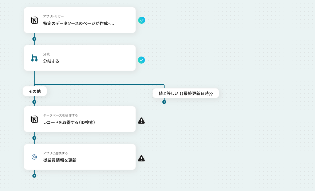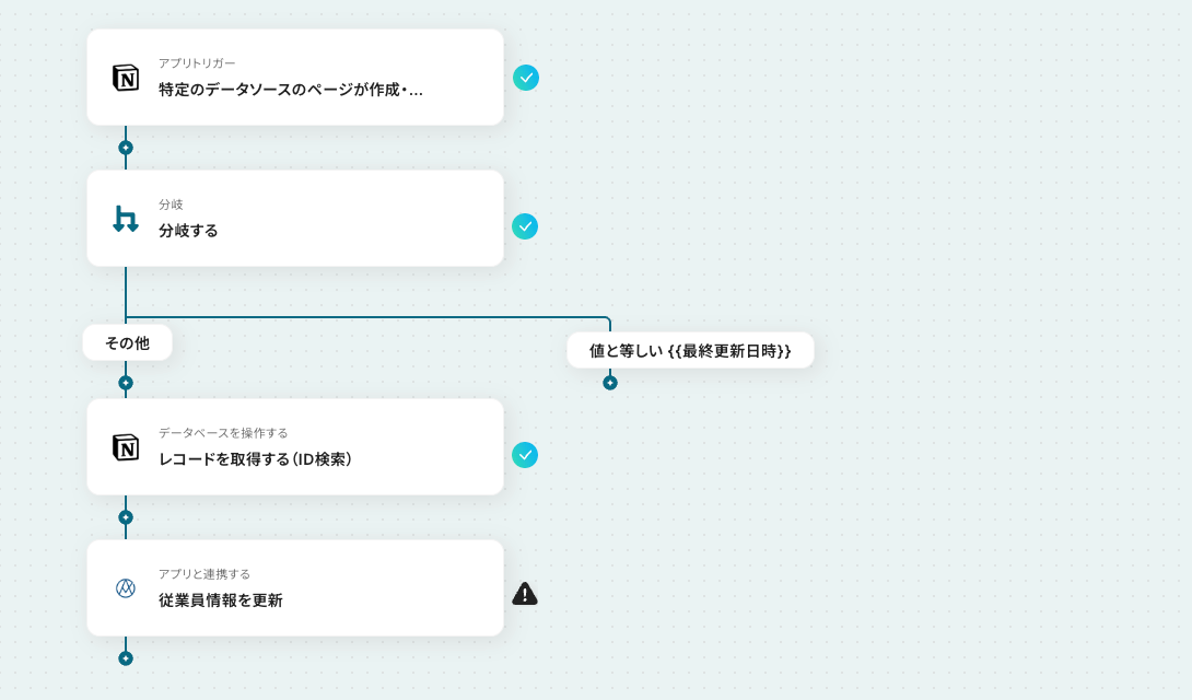 今回のフローは「Notionで従業員情報が更新されたらAKASHIの情報も更新する」というものです。