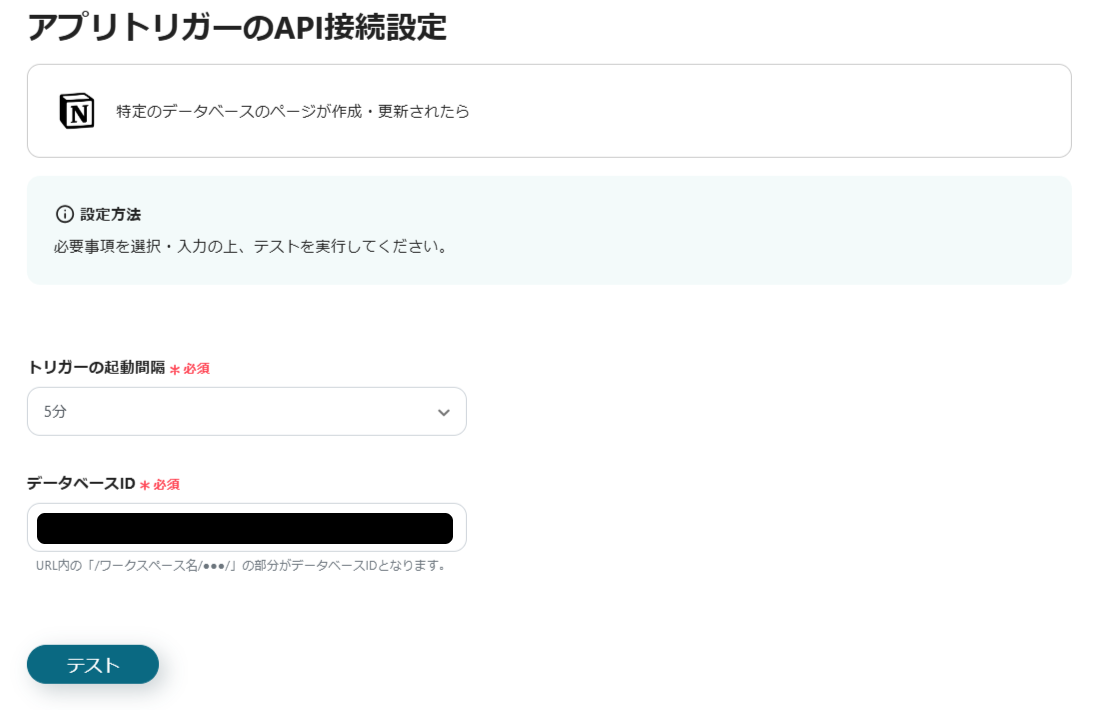 設定した間隔ごとにNotionのデータベース更新を確認するので、業務内容に適したものを選択してください。
