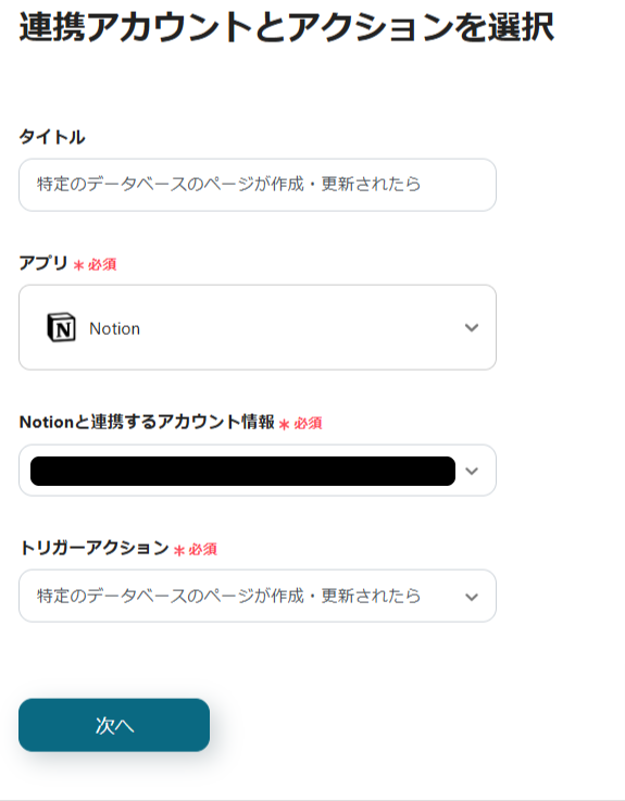 1ページ目では、マイアプリ連携が済んでいるNotionのアカウント情報が反映されています。