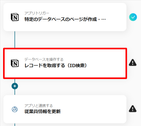 上記画像では、NotionのレコードIDが、取得したアウトプットのオブジェクトIDと同じものをレコード取得の条件としています。