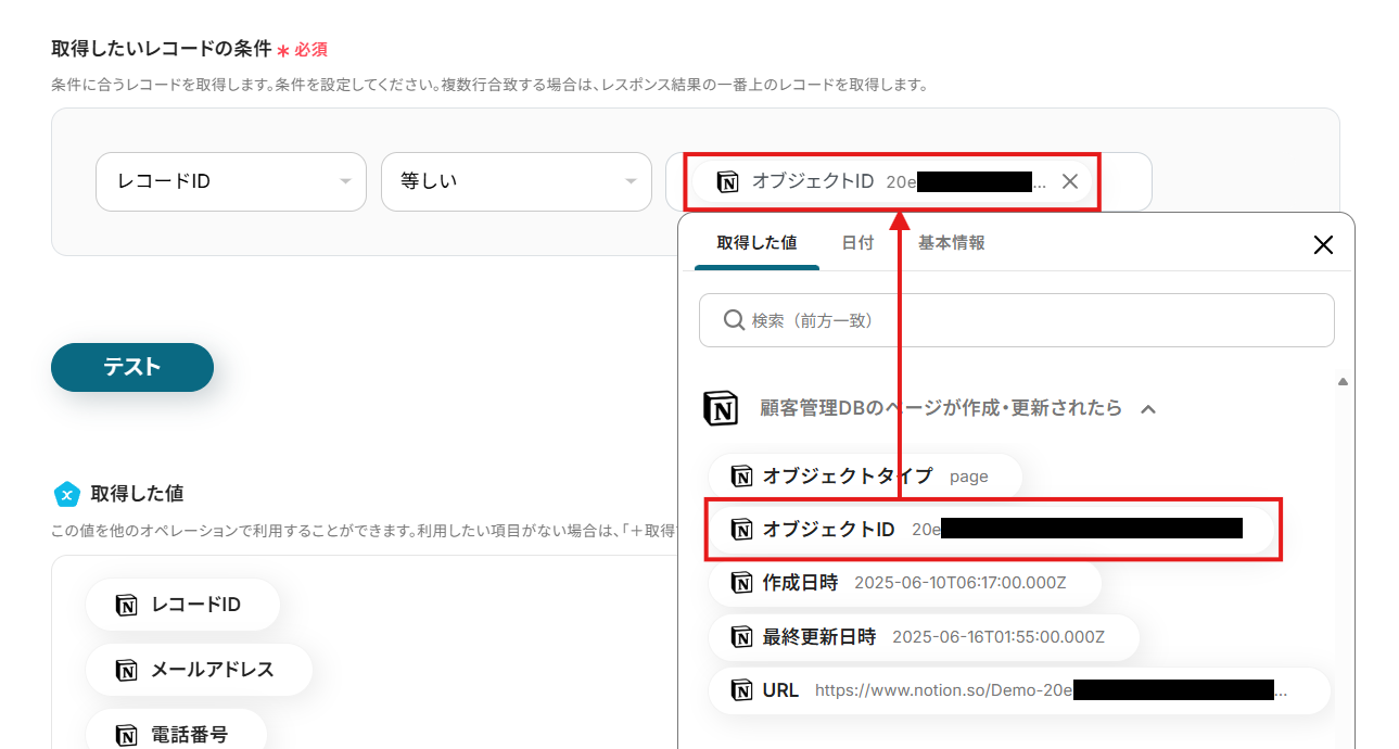 ・NotionのレコードIDを取得する方法は下記をご参照ください。