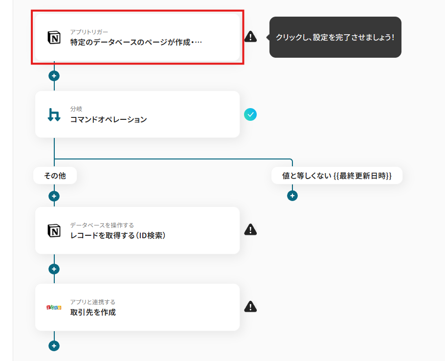 このフローでの「Notionのページ」とは、Notionデータベースのレコードを指しています。