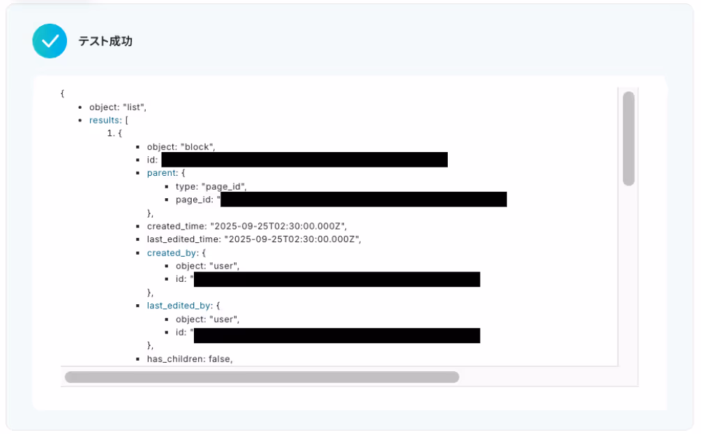 なお、この取得した値はこの後の設定で活用でき、Notionに自動登録可能なデータとなります!