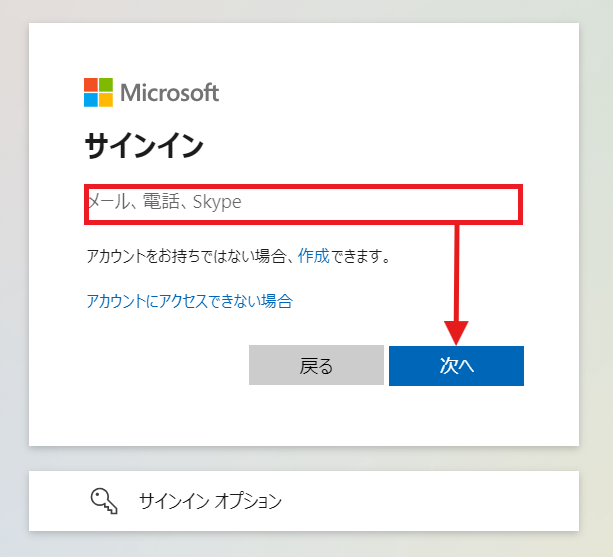 以下の画面が表示されたら、Outlookにサインインしましょう。