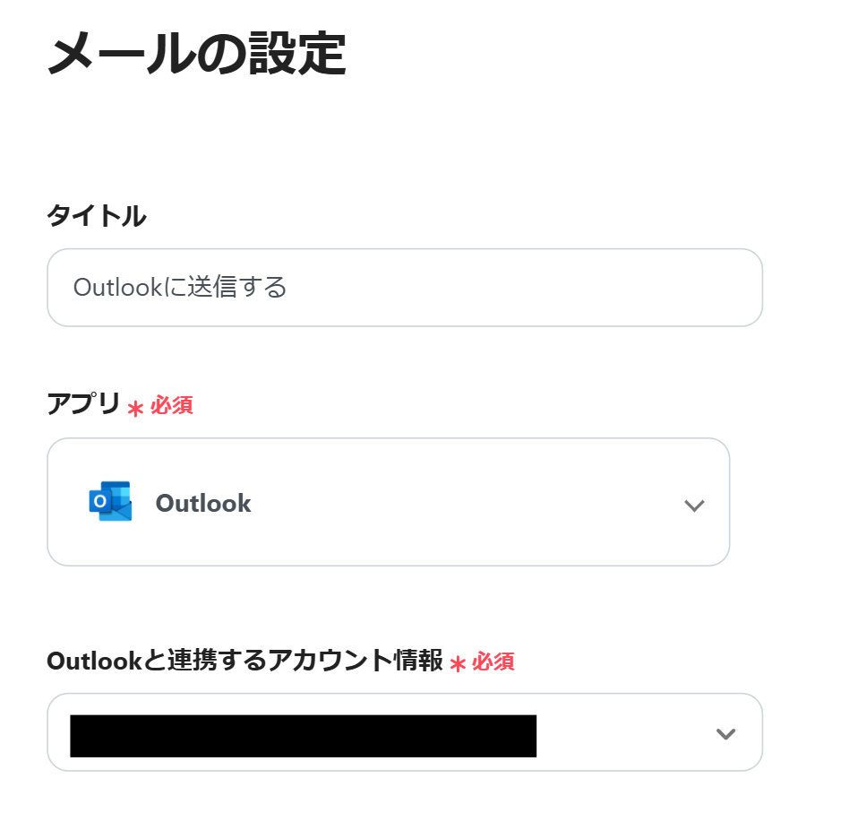 - 「Outlookと連携するアカウント情報」→相違がないか確認