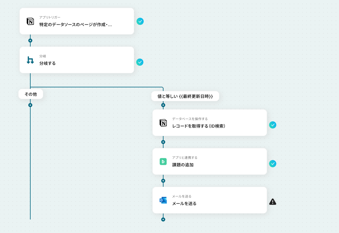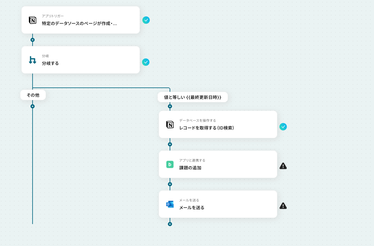 このワークフローを活用すれば、Notionに新しいページが作成されるだけで、Backlogへのタスク作成からOutlookでのメール送信までを自動で実行し、プロジェクト管理を円滑に進めることができます。