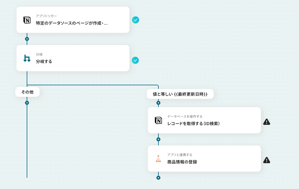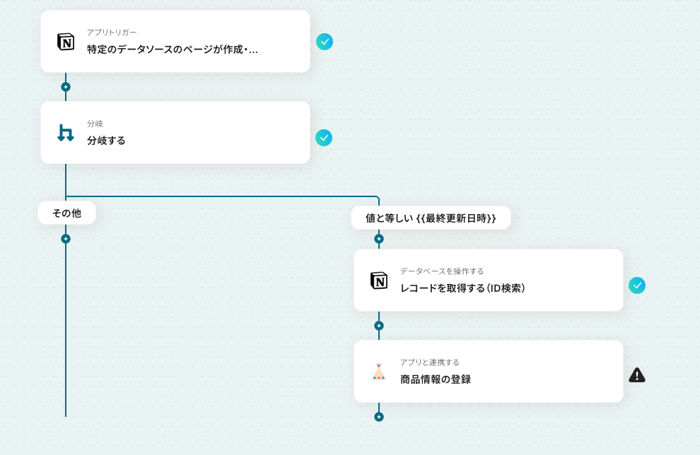 - 「分岐する」オペレーションは、ミニプラン以上でご利用いただけます。フリープランで利用するとエラーになってしまうのでご注意ください。