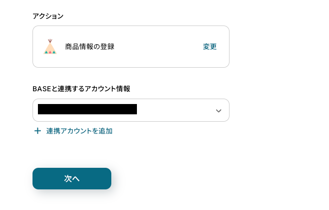 トリガーアクションの変更はせずに、アカウント情報を確認したら「次へ」をクリックしてください。