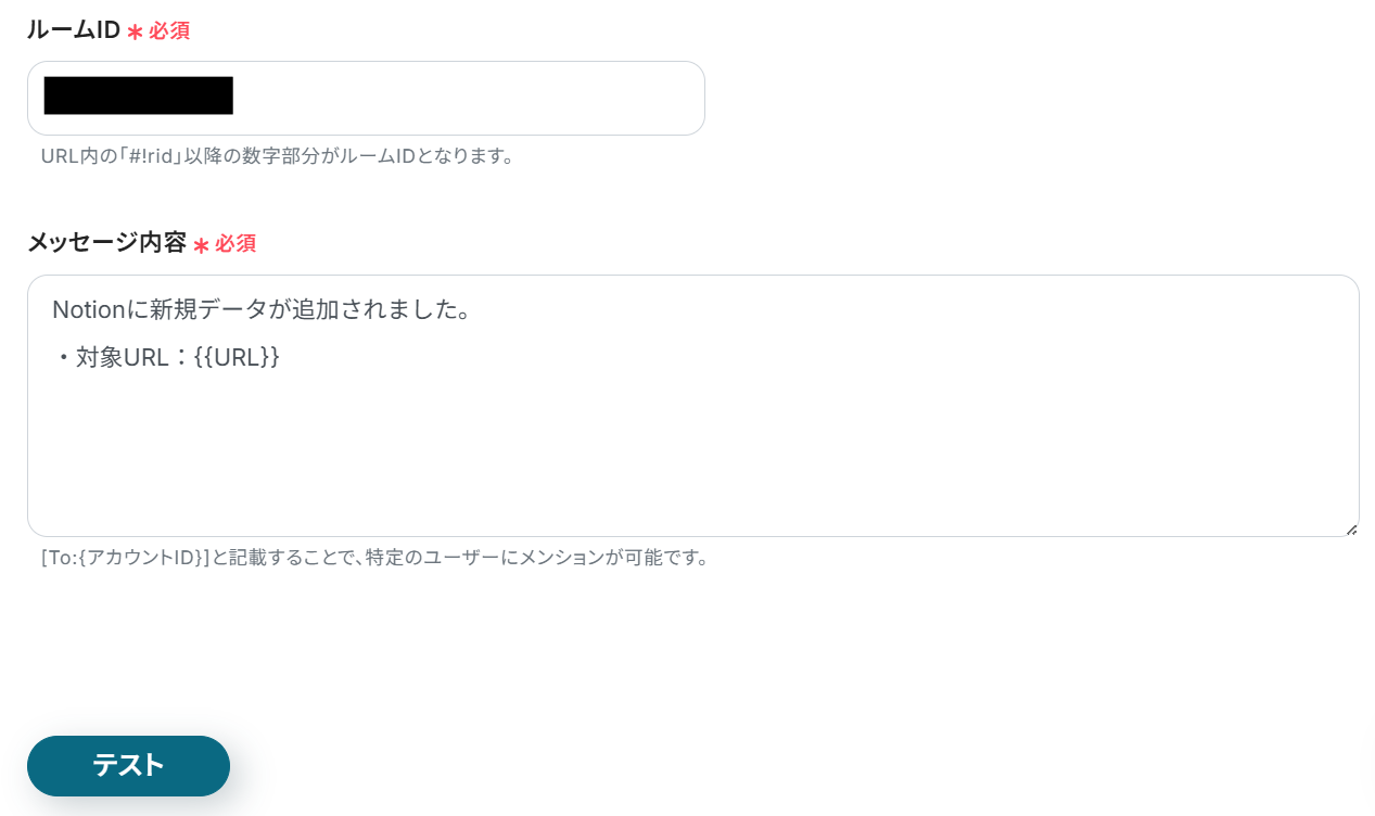 Chatworkのメンション後にNotionにメッセージ内容を自動追加するフローです。
