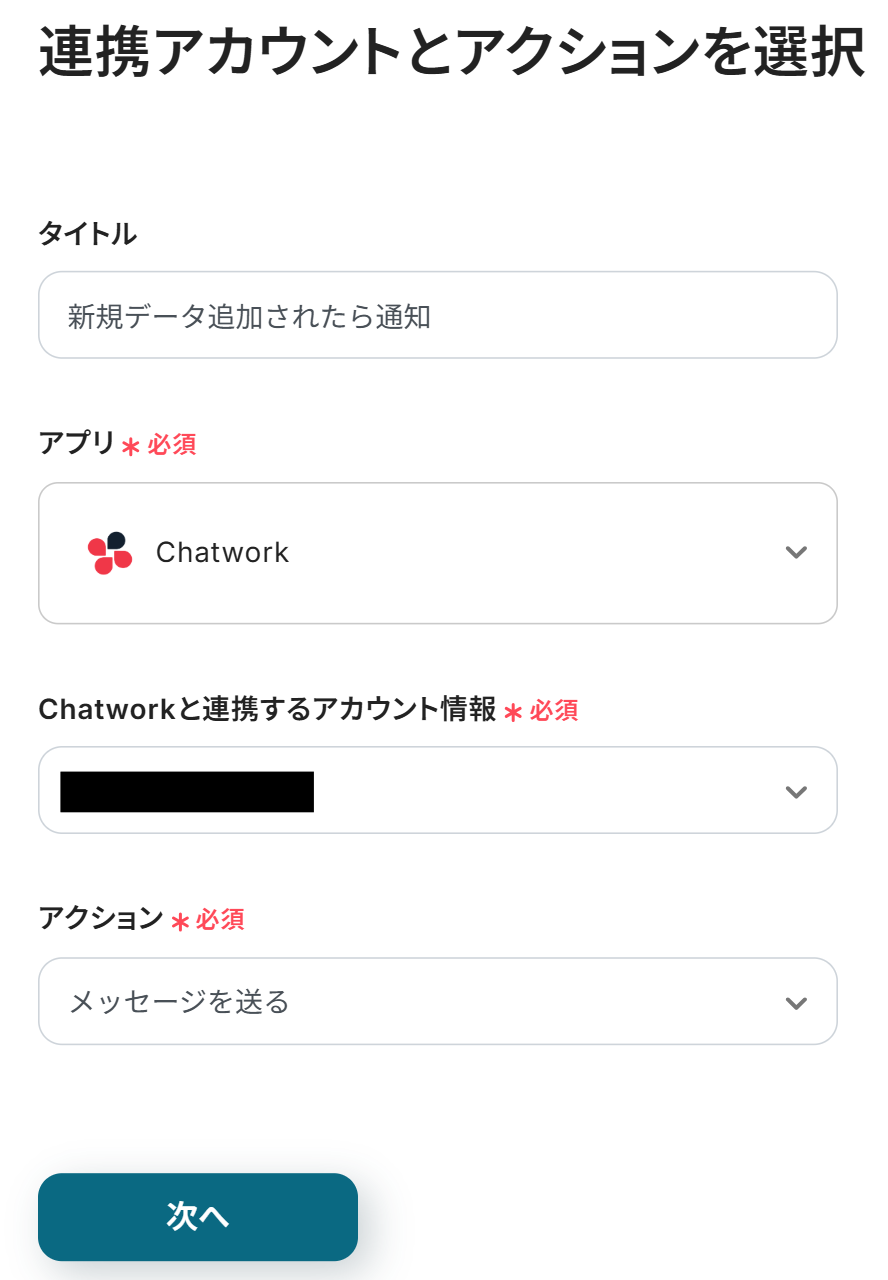 続いて、Chatworkに通知する設定を行うため、「新規データ追加されたら通知」をクリックします。