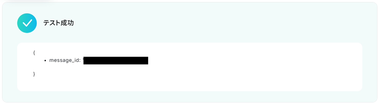 テストが成功すると、以下のように「テスト成功」と表示されます。
