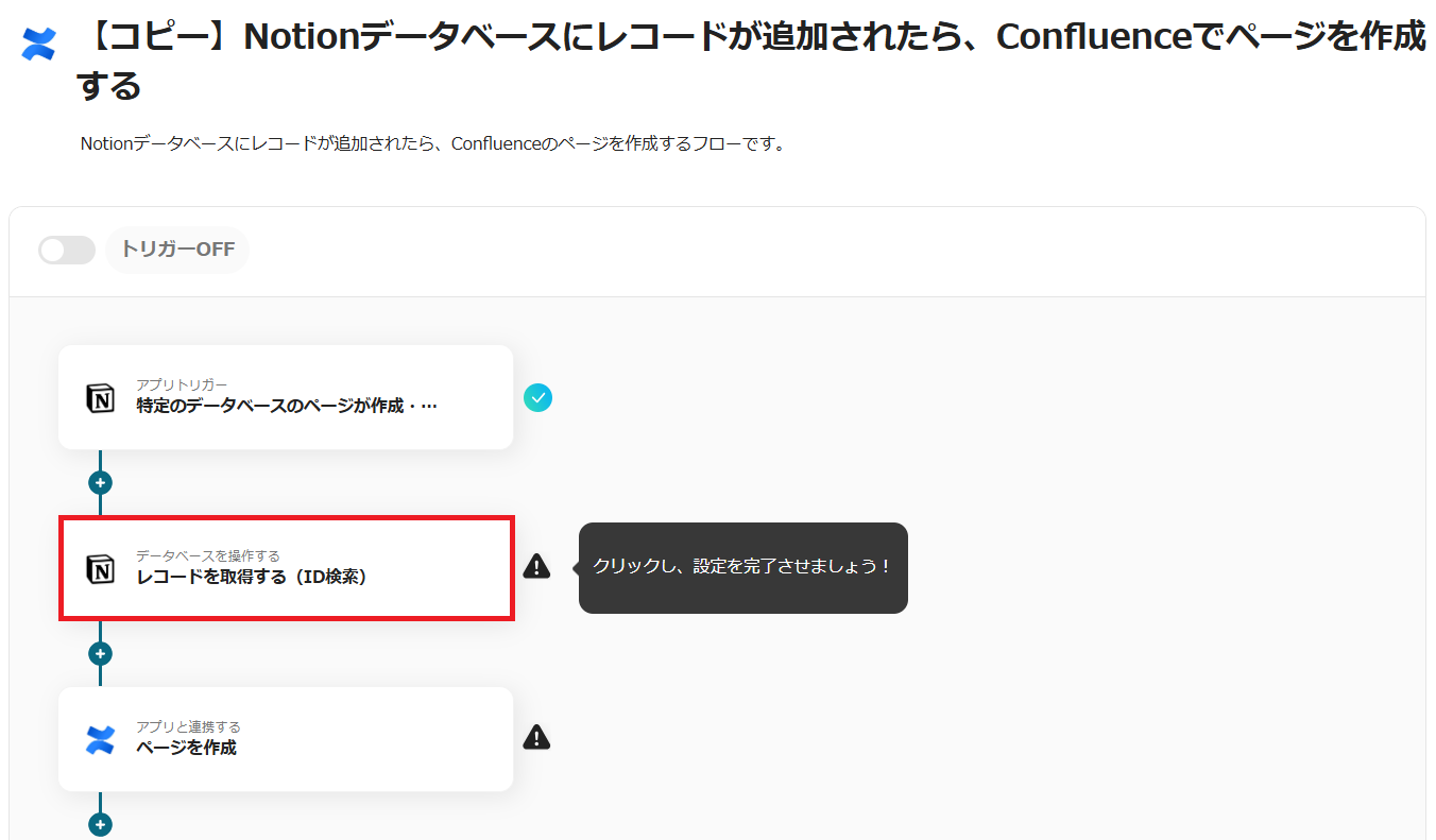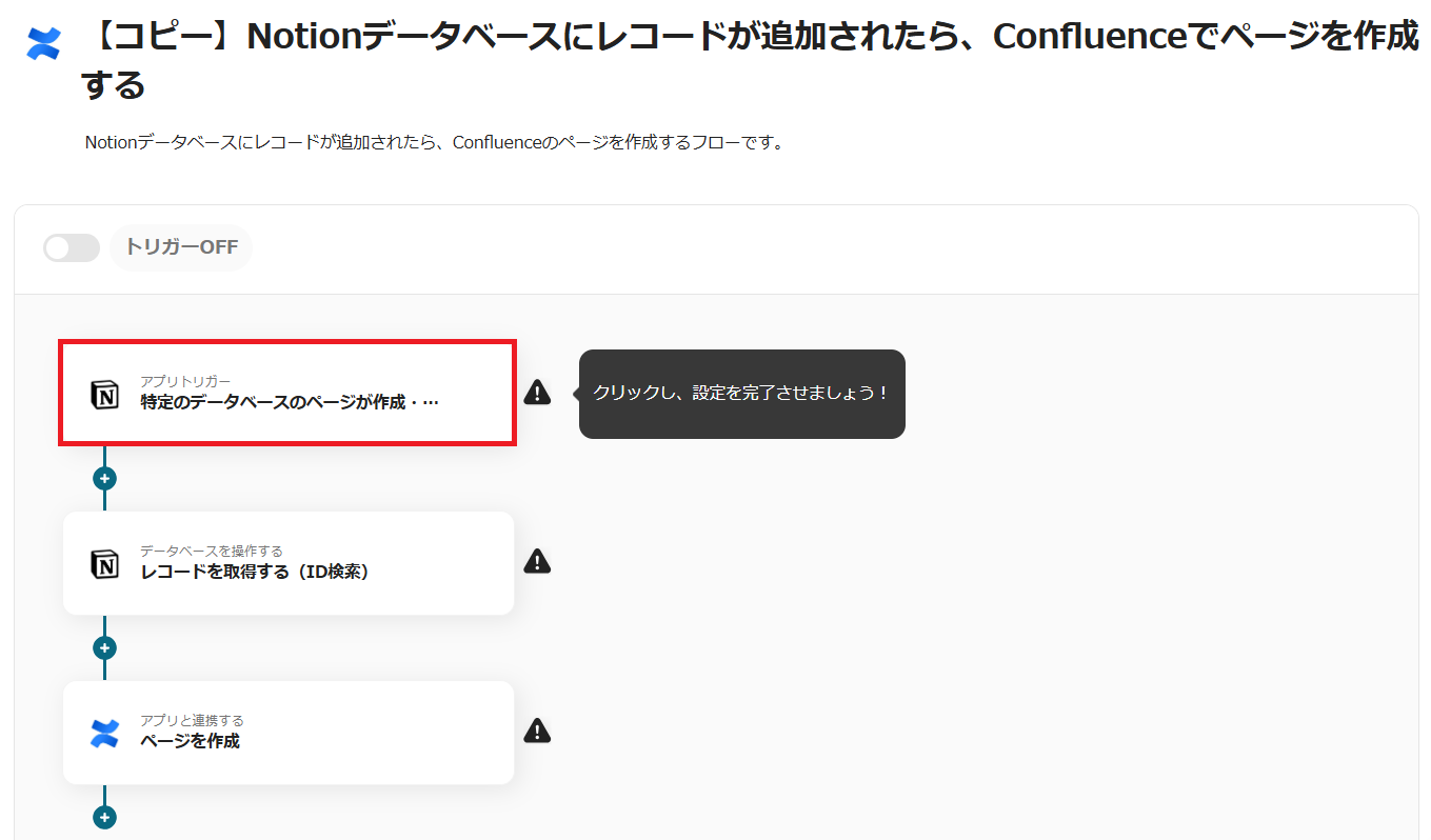 このフローは、Notionデータベースにレコードが追加されるとトリガーが起動します。