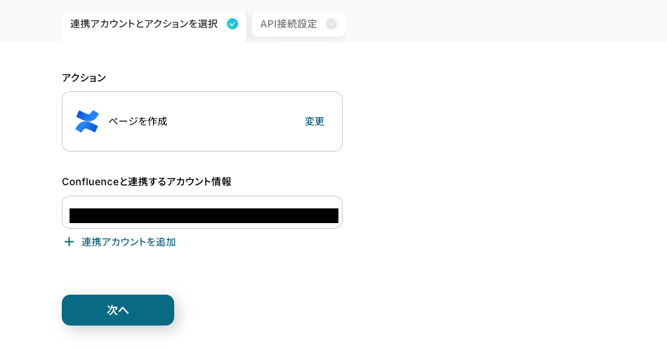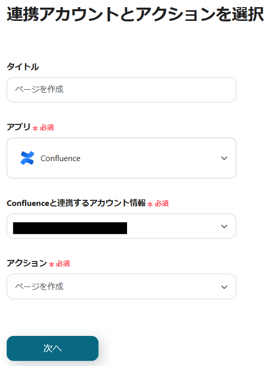 2.Confluenceと連携するアカウントを確認し、「次へ」をクリックします。