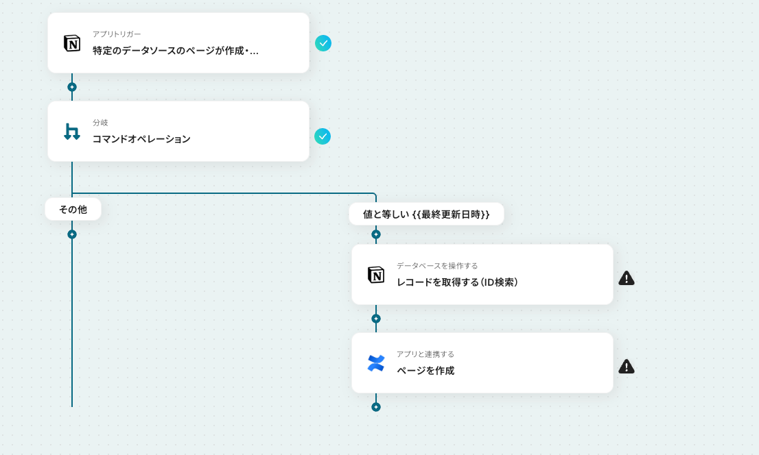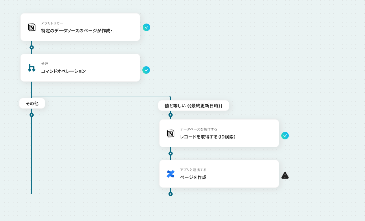 Notionでタスクや議事録を管理し、その内容をConfluenceでドキュメントとしてまとめる際、手作業での転記に手間を感じていませんか?この作業は時間がかかる上、コピー&ペーストによるミスや共有漏れのリスクも伴います。このワークフローを活用すれば、Notionのデータベースにレコードが追加されるだけで、Confluenceに自動でページを作成できるため情報共有の迅速化と正確性の向上を実現します。