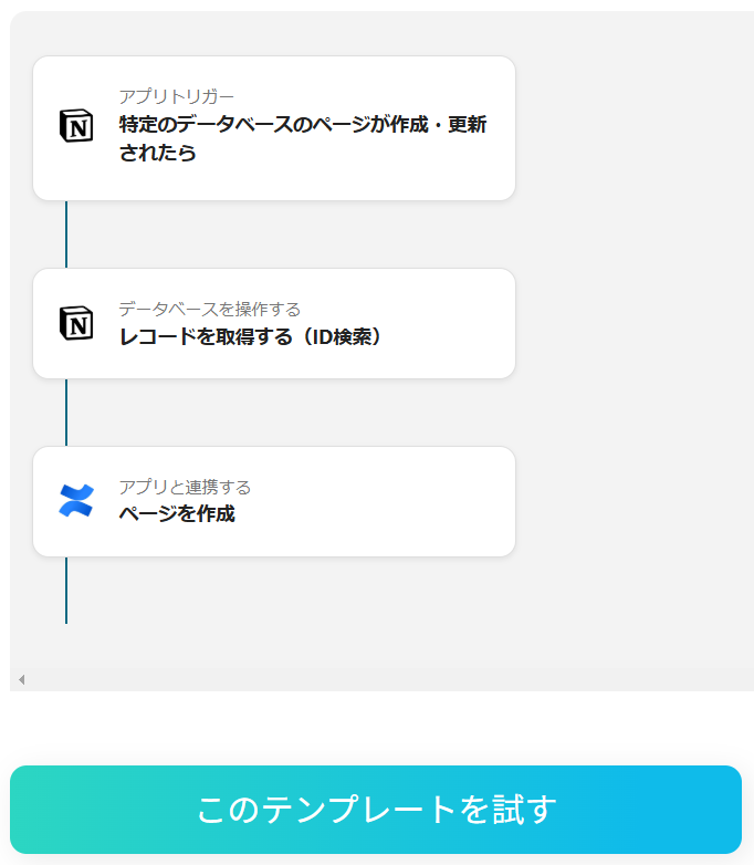 Notionデータベースに追加した情報を基に、Confluenceでページを作成する業務は、知識や経験を必要としない定型タスクです。